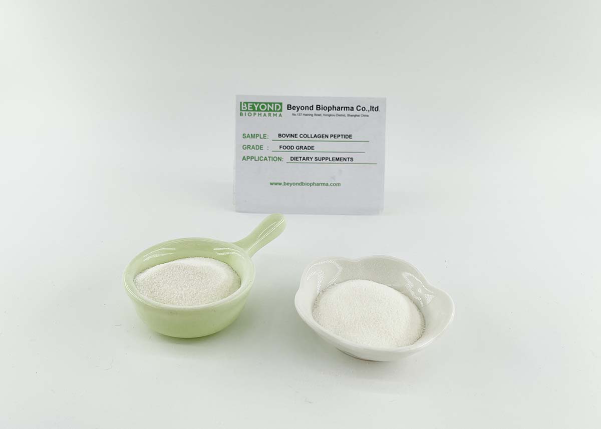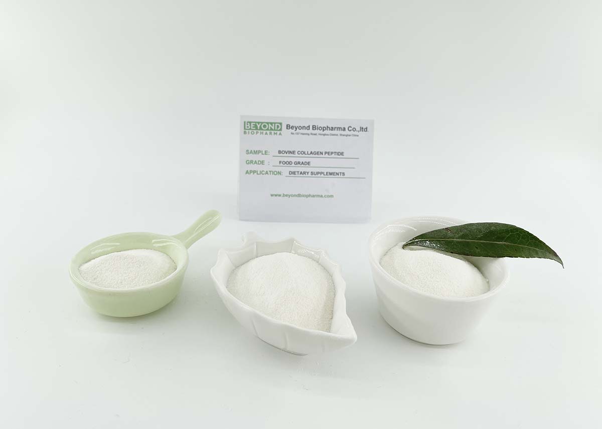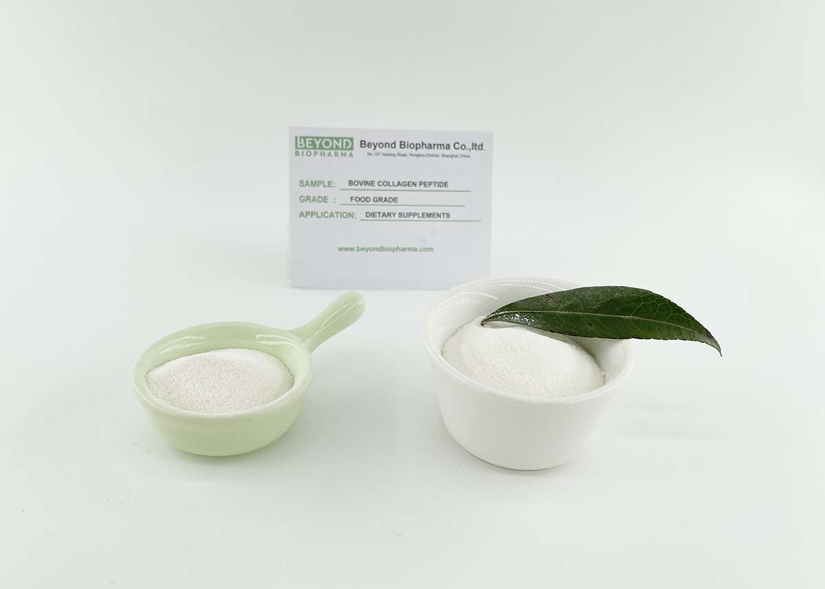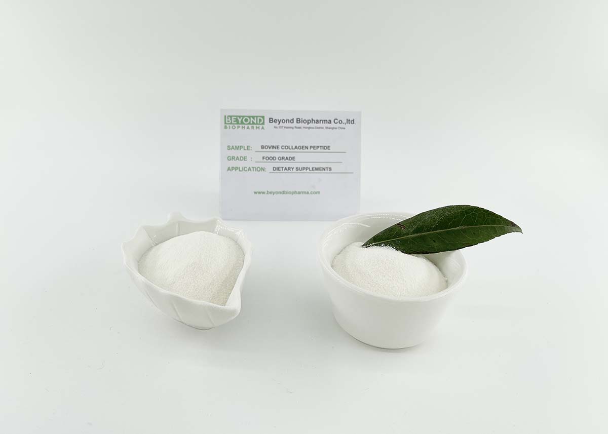 O peptídeo de colágeno bovino é um ingrediente nutricional amplamente utilizado em alimentos, cosméticos e suplementos dietéticos.O peptídeo de colágeno bovino pode ser adicionado a barras nutricionais ou lanches para fornecer energia.O peptídeo de colágeno bovino é produzido principalmente em bebidas sólidas em pó para quem faz exercícios na academia para fins de construção muscular.O peptídeo de colágeno bovino também pode ser adicionado à esponja de colágeno e ao creme facial de colágeno.